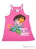 Майка - борцовка для девочки, выполненная из хлопка с эластаном - необходимая вещь в летнем гардеробе ребенка. Яркие выразительные принты на полочке и внутренней части спинки в стиле "Даша путешественница" - эффектное украшение изделия. В оформлении принта - мелкие сияющие стразы.