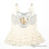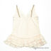 Детали: тонкие регулируемые бретели, полочка изделия украшена набивным принтом, низ майки декорирован многослойными рюшами.