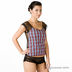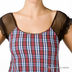 Яркая и изящная майка. Спинка выполнена из прозрачной сетки черного цвета. Рукав отделан ажурной тесьмой.
