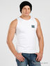 Детали: округлый вырез горловины и проймы окантованы трикотажной лентой; на полочке аппликация