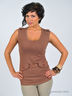 Стильная майка на широких бретелях с округлым вырезом горловины. Спереди и на плечах модель дополнена декоративными пуговицами. Имитация втачных карманов. Отличный вариант на каждый день.