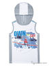 Майка, выполненная из эластичного трикотажа, дополнена капюшоном. Модель декорирована принтом спереди. Отличный вариант для гардероба вашего малыша.