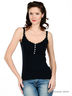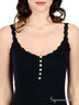 Детали: V-образный вырез горловины, имитация застежки на перламутровые пуговицы, лямки и проймы декорированы кружевом