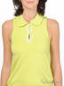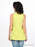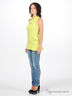 Майка трикотажная без рукавов. Отложной воротник. Планка-застежка с двумя пуговицами. На уровне талии притачан декоративный поясок, присобирающий ткань декоративными складками. Надпись аппликация с логотипом бренда на передней части изделия.