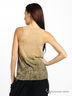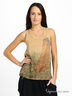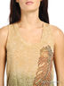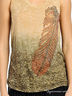 Очаровательная майка декорированная градиентом и украшенная пером из оранжевых и коричневых страз.