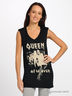 Майка c подкладными поролоновыми плечиками, украшенная принтом с изображением девушки с ангельскими крыльями и надписью. Майка предназначена для носки с пиджаком или жакетом.