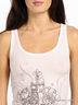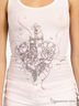 Превосходная трикотажная майка, украшенная орнаментом из бисера и крупных страз, с изображением меча пронзающего сердце.