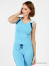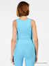 Повседневная майка приталенного силуэта. Выполнена из эластичного материала. Округлый вырез горловины. Без рукавов. Модель украшена контрастными вставками.