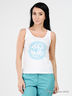 Модная майка приталенного силуэта. Выполнена из мягкого хб материала. Округлый вырез горловины. Без рукавов. Полочка украшена оригинальным принтом и стразами.