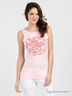 Стильная майка из мягкого, эластичного кулирного трикотажа. Широкий вырез горловины с большим разрезом на спине. Широкие лямки. На полочке крупное вышитое изображение. Края горловины и проймы рукавов не обработаны. Яркий и лаконичный дизайн.