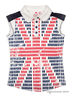 Нежная майка-поло лаконичного кроя. Выполнен из хлопковой ткани. Изделие без рукавов и отложным воротничком. Модель имеет застежку на пуговицы и оригинально декорирована принтом в виде флага. Отлично сочетается с любыми предметами Вашего гардероба.