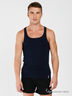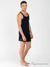 Мужская майка из тонкого эластичного трикотажа. Спинка-борцовка, круглый вырез и проймы окантованы трикотажной лентой. На спине небольшая аппликация.