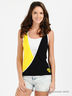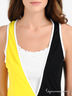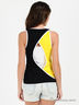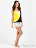 Стильная женская майка из тонкого трикотажа оригинального кроя. Глубокий V-образный вырез с запахом спереди, оригинальная прорезь и запах сзади. Окантовка краев в виде трикотажной ленты белого цвета.