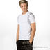 Трикотажная майка с круглым вырезом горловины. Пройма рукава декорирована вставками с газетным принтом.
