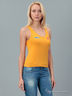 Хлопковый топ с округлым вырезом горловины станет удачным дополнением к Вашему гардеробу. Яркий цвет подарит хорошее настроение своей обладательнице и ее окружению.