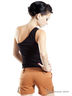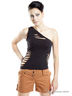 Оригинальный и дерзкий топ приталенного кроя. Выполнен из приятного на ощупь материала. На одной широкой бретеле, украшен вызывающими разрезами.