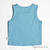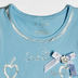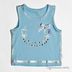 Красивая голубая майка, украшенная стразиками, камушками и бантиком спереди. Имеет круглый вырез. По контуру маечка прокрашена нечёткими серебристыми линиями.