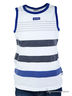 Отличная трикотажная майка с активными крупными полосками. Наличие эластана в составе трикотажного полотна обеспечивает комфортную носку и отличное прилегание к телу. В качестве декора использован небольшой шеврон.