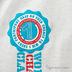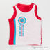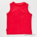 Модель прямого кроя. Спинка красного цвета, полочка белая с красным и голубым. Ворот и прорези для рук - трикотажные резинки. Аппликация на полочке.