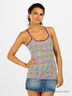 Элегантная майка-борцовка на тонких бретелях отлично подойдет как для прогулок на свежем воздухе, так и для спорта. Приятная на ощупь эластичная ткань. Горловина обработана трикотажной лентой контрастного цвета.