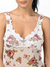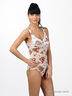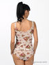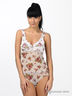Топ из прозрачной трикотажной сетки с цветочным принтом. Глубокий вырез декольте украшен кружевным бантиком. Особенности кроя подчеркивают красоту груди.