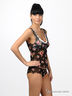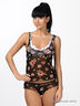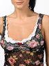 Топ из прозрачной трикотажной сетки с цветочным принтом. Глубокий вырез декольте украшен кружевным бантиком. Особенности кроя подчеркивают красоту груди.
