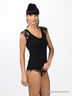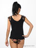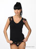 Элегантный домашний топ с V образным вырезом спереди и сзади. Рукава-рюши, выполненные из прозрачной трикотажной сетки с цветочным принтом. Декоративная отделка по низу топа и горловине.