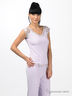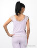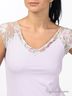 Элегантный домашний топ с V образным вырезом спереди и сзади. Рукава-рюши, выполненные из прозрачного хлопкового трикотажа, с "вытравленным" цветочным рисунком. Декоративная отделка по низу топа и горловине.