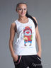 Детали: окантовка круглого выреза и пройм в виде трикотажной ленты; спинка-борцовка; на полочке оригинальный рисунок