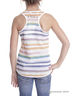 Майка с круглым вырезом и борцовской спинкой. Принт спереди и разноцветные полоски сзади. Асимметричный крой - чуть длиннее сзади.