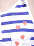 Майка без рукавов с бантом на бретели. Круглый вырез с планкой застежки на 3 пуговицы. Карман и принт сердечек на груди. Надпись Le Petit Marcel сзади и надпись спереди. Размер по росту в см.