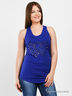Детали: округлый вырез горловины, тонкие бретели, полочка декорирована принтом сердечки из металлических клепок.