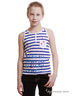 Майка без рукавов с бантом на бретели. Круглый вырез с планкой застежки на 3 пуговицы. Карман и принт сердечек на груди. Надпись Little Marcel сзади и надпись спереди. Размер по росту в см.