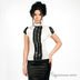 Женская эластичная майка. Вортник-стойка. Короткие рукава. На плече потайная молния. Рукава и полочка декорированы кружевными рюшами.