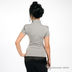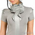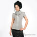 Трикотажная женская майка. Воротник стойка. Короткие рукава. На плече потайная молния. Полочка украшена отрезной планкой и воланами на атласной подкладке, вышитыми пайетками.
