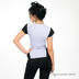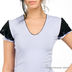 Майка женская. Эластичная женская майка. Круглая горловина. Короткие рукава, украшенные кружевом. Снизу по бокам майка декорирована кружевными вставками.
