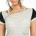 Майка женская. Трикотажная майка с люрексом. Короткие рукава, украшенные кружевом. Сзади на спинке декоративная вставка из кружева и шифона.