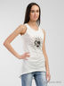 Очаровательная майка на широких бретелях с округлым вырезом. Спереди модель дополнена контрастным принтом. Отличный вариант на каждый день.