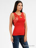 Нежная майка прилегающего силуэта выполнена из мягкого итальянского трикотажа. Округлый вырез горловины декорирован кружевной тесьмой, аккуратный вырез-капелька декорирован атласным бантиком с подвеской в виде сердечка, эффектные кружевные вставки по бокам.