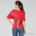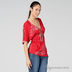 Майка прямого кроя из нежного на ощупь материала. Цельнокройные рукава. Отрезная кокетка. Поясок, вышитый в боковые швы, завязывающийся сзади.