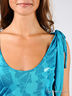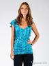 Оригинальная майка с округлым вырезом горловины из тонкого трикотажа, с асимметричным кроем рукавов и декоративной завязкой на левом плече. Майка прямого силуэта расклешенное к низу.