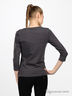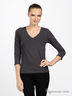 Стильная футболка из тонкого трикотажа прямого кроя. V-образный вырез горловины дополнен трикотажной лентой. Рукав три четверти.
