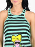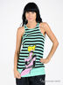 Майка-борцовка я яркого цвета из приятной ткани. Яркий набивной рисунок и с металлическими декоративными элементами.