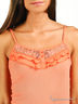 Майка из нежного, приятного на ощупь трикотажа в рубчик. Тонкие лямки. Декоративная планка с пуговицами. Кокетка выполнена из кружева и украшена оборками.