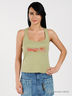 Детали: широкие лямки, круглый вырез горловины, по краям бейка, по спинке оголены лопатки.