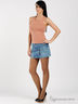 Детали: широкие лямки, круглый вырез горловины, по краям бейка, по спинке оголены лопатки.
