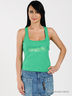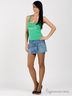 Детали: широкие лямки, круглый вырез горловины, по краям бейка, по спинке оголены лопатки, оригинальный неброский принт на полочке.