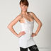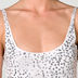 Длинная белая маечка на тонких лямках, украшенная серебристыми пайетками.
