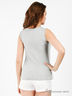 Повседневная майка приталенного силуэта. Выполнена из приятного на ощупь материала. Округлый вырез горловины. Без рукавов. Модель украшена сетчатой вставкой.