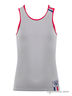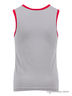 Майка для мальчиков среднего школьного возраста. Модель классического кроя, полуприлегающего силуэта, удлинённого типа под заправку. Изделие декорировано контрастными кантами, узкими бейками синего и красного цветов на одном плече и по нижнему краю. Передняя деталь майки дополнена логотипированной нашивкой. Модель выполнена из высококачественного трикотажного полотна, гарантирующего идеальную посадку по фигуре.